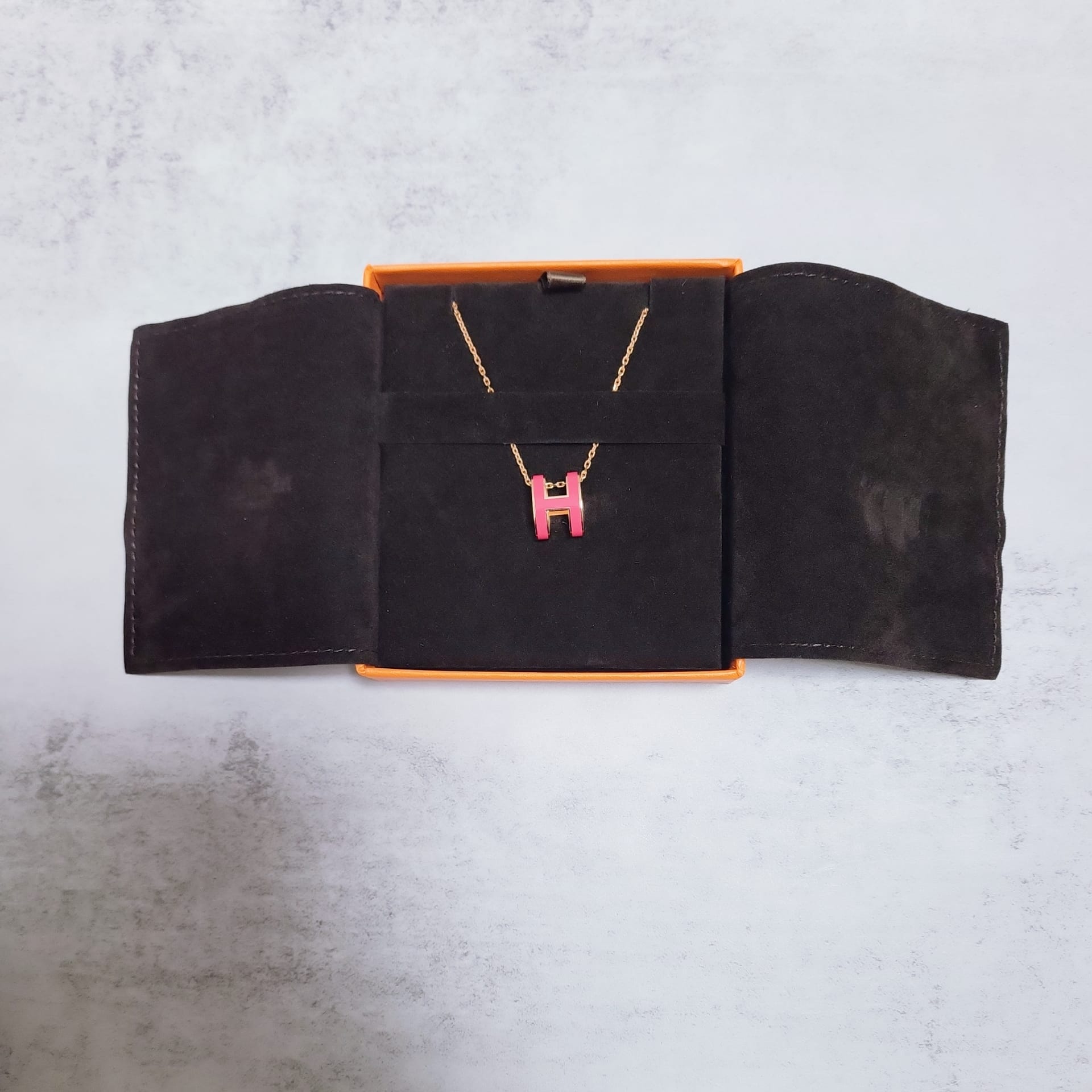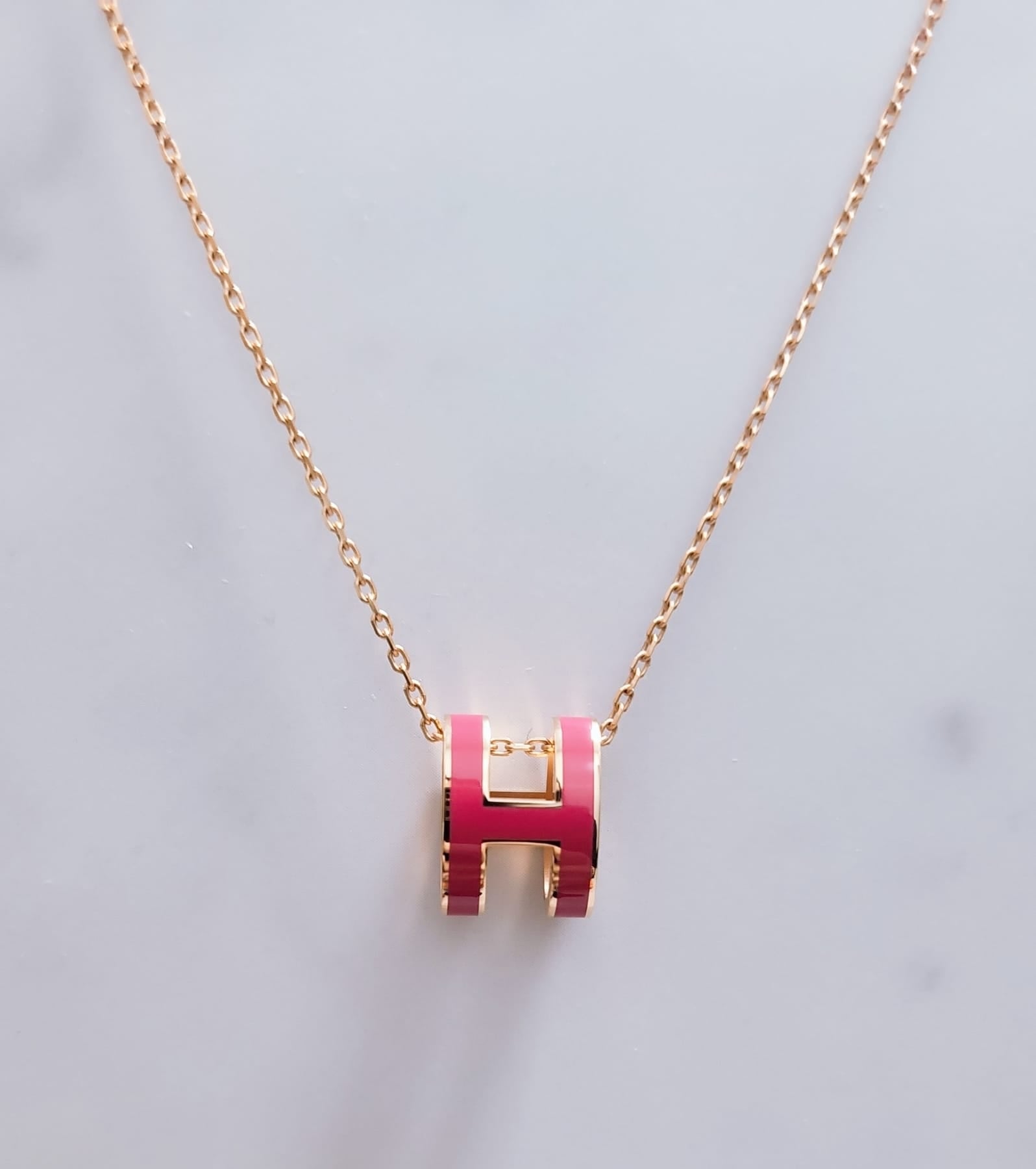 Hermes Pop H 玫瑰紅色玫瑰金鏈圓型 頸鏈